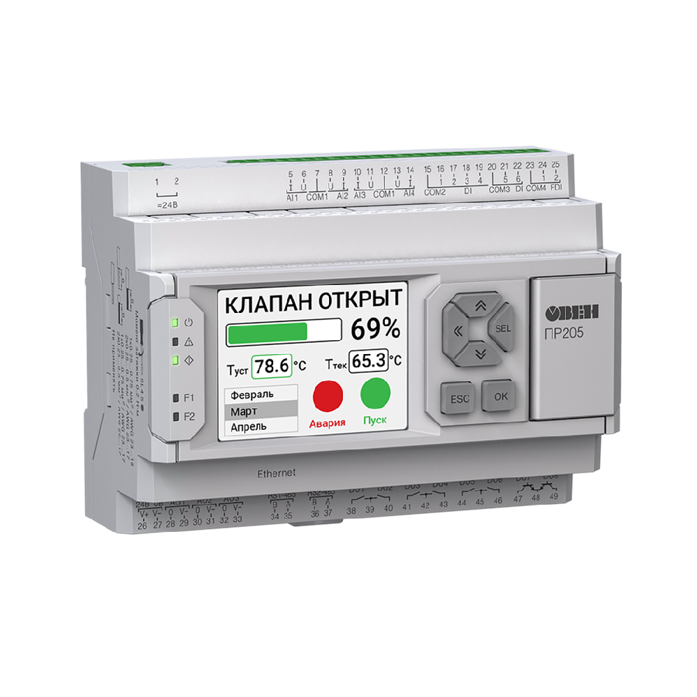 ПР205-230.1211.02.2.0 Программируемое реле 230VAC, 4xAI, 8xDI(230), 8xDO(Р), 3xAO(У), 2хRS-485